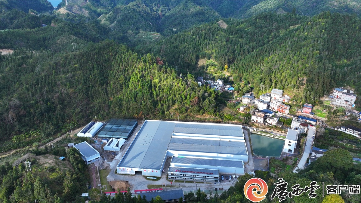 菌林天下农旅融合现代农业产业园俯瞰图。 12月2日,来宾金秀瑶族自治县的菌林天下农旅融合现代农业产业园迎来丰收季,园内试种的赤灵芝批量采收,这些灵芝将经过一番“梳妆打扮”,成为优质成品,并通过“线上+线下”的模式,源源不断销往国内各大市场。