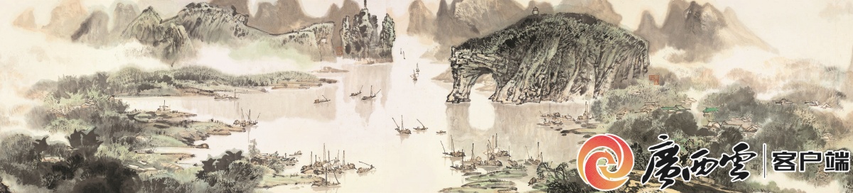 《漓江百里图》局部。 广西漓江画派促进会供图 一代代漓江画派的画家们以饱满的热情,扎根广西,以具有广西地域特点的山水花鸟、民族风情、城市景观等为题材,创作出一批批以传统的中国画为主体,兼具油画、版画、水彩画等多种类型的美术作品。这些作品大多以背景写生为基础,具有典型的南方式的温润平和、鲜活大气和包容开放。 在传承与发展中,漓江画派形成了现代南方的新田园诗画风,其中国画的最大特色是写生化和生活化;颐堑囊帐跏导,生动诠释了真挚醇厚的家园情怀。 家园不仅指自然家园与生活家园,还包括精神家园。因为这些作品中有温度、有记忆、有情感、有生活,所以韵味更为悠长,更为醇厚,更能打动人。 中国艺术研究院研究员王镛认为,漓江画派跟其他画派最本质的区别,就是作品中的家园情怀比其他的画派更浓重、更典型。画家们对广西这片神奇的土地和多民族生活充满浓厚的家园情怀。 在创作中,画家们总是自然而然地将家园情怀融入笔端。 阳太阳曾说:“家乡的山水有无穷的意境,爱得越深,意境也就越深! 张复兴曾说:“一切艺术都是用生命谱写和讴歌自己心灵中的温馨家园。在几十年的绘画艺术创作中,我以表现自己心中的温馨家园作为意境。我的山水画初始的生活依据在桂北,但又不以表达桂北某山某水为目的,我追寻的是大的感觉,大的境界,追寻的是自己心灵得以憩息的故土家园! 谢森曾说:“从前我画漓江,多为写实还原,着力表现当地的风貌。但现在再来画,可能对山水的精神认识更多,比如它的某种坚韧、野性、强悍……而不仅仅是秀美”。 正如王镛所说:“纵观漓江画派的优秀作品,壮美奇丽的山水意象令人喜爱,质朴单纯的人物造型令人激赏,酣畅淋漓的笔墨语言令人赞叹,明艳淡雅的色彩变化令人愉悦,而渗透在这一切之中的画家的真挚醇厚的家园情怀,则令我们深深地感动! 历史与未来 漓江画派是当代中国较为活跃的绘画流派之一。漓江画派的形成有一定的历史渊源与文化积淀。学界普遍认为,漓江画派源于阳太阳、凃克、黄独峰等,成于黄格胜。 当时光的指针回拨,多少漓水春秋仍历历在目。 1962年,漓江画派奠基者之一阳太阳率先提出了“桂林画派”的概念,为漓江画派的形成提供了理论铺垫。 2004年,广西漓江画派促进会在万众瞩目中成立。 2024年5月,“壮美广西——漓江画派20年作品展”在北京中国美术馆举办,再次引起了全国美术界的关注。 如今,漓江画派在美术作品展览、艺术创作与理论研究、人才培养、文化交流传播等方面取得了丰硕成果,已成为广西美术界的代名词和广西文化的亮丽名片。