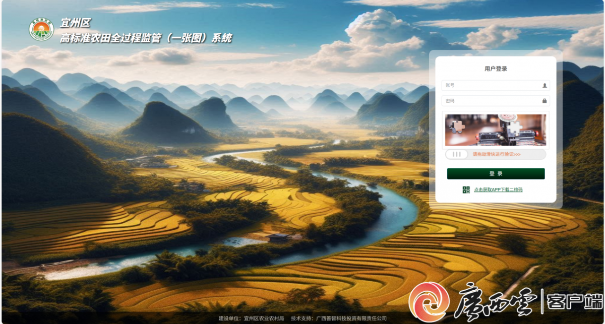 ÒËÖÝÇø¸ß±ê׼ũÌïÈ«¹ý³Ì¼à¹Ü£¨Ò»ÕÅͼ£©ÏµÍ³µÇ¼½çÃæ¡£ ¡°ÒÔǰ¹ÜÅ©Ìï¿¿ÍÈÅܱʼǣ¬ÏÖÔÚ´ò¿ªÏµÍ³¾ÍÄÜÊµÊ±ÕÆÎÕËùÓÐÇé¿ö¡£¡±ÒËÖÝÇøÅ©ÒµÅ©´å¾Ö¹¤×÷ÈËÔ±½éÉÜ£¬ÏµÍ³ÕûºÏÁËÅ©Ìï¹æ»®²¼¾Ö¡¢Ê©¹¤½ø¶È¡¢ÖÊÁ¿ÑéÊÕ¡¢×ʽðÁ÷ÏòµÈºËÐÄÐÅÏ¢£¬¹¹½¨Æð¡°¿¿Ç°¼à¶½¡¢ÊµÊ±²éÔÄ¡¢¹ý³Ì¹æ·¶¡¢ÈËÁ³Ê¶±ð´ò¿¨¡¢ÐÅÏ¢±Õ»·¡¢Êý¾Ý¹²Ïí¡±Áù´ó±Õ»·»·½Ú¡£Ê©¹¤µ¥Î»Í¨¹ýϵͳ¶¨Î»Ìʩ¹¤ÈÕÖ¾¡¢ÉÏ´«ÏÖ³¡ÕÕÆ¬£¬¼àÀíµ¥Î»ÔÚÏßÇ©·¢Õû¸Ä֪ͨ£¬Õû¸ÄǰÖкóÈ«³ÌͼƬÁôºÛ£¬ÊµÏÖÎÊÌâÕû¸Ä±Õ»·¹ÜÀí£¬´òͨÁ˼à¹Ü¡°×îºóÒ»¹«À¡£ Ϊȷ±£ÏµÍ³¸ßÐ§ÍÆ¹ãʹÓã¬ÉÏÏßµ±ÈÕ£¬ÒËÖÝÇøÅ©ÒµÅ©´å¾Ö±ã×é֯ʩ¹¤¡¢¼àÀí¡¢½¨ÉèµÈµ¥Î»¿ªÕ¹×¨ÌâÅàѵ£¬Ïêϸ½²½âϵͳ¹¦ÄÜ¡¢²éѯ¼°ÌÁ÷³Ì£¬Ïà¹ØÈËԱͨ¹ýÇ©µ½²Îѵ¿ìËÙÕÆÎÕ²Ù×÷¹æ·¶¡£
